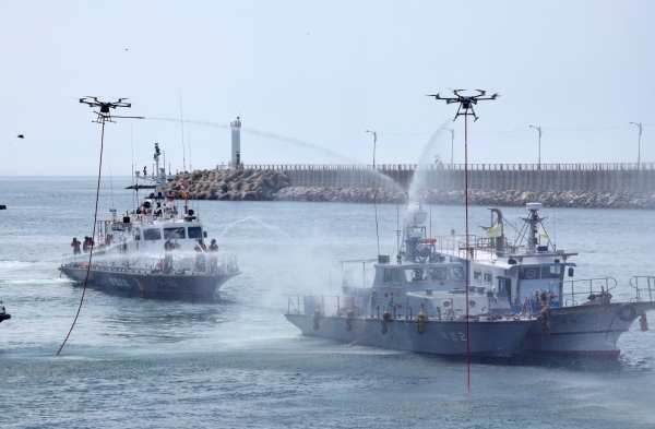 특히 드론의 경우 선박화재 진압 실증을 맡은 ‘인투스카이’ 해수욕장 안전관리를 수행하는 ‘세이에어’ 초기 화재 진압에 나선 ‘한울드론’이 참여해 기술력을 뽐냈으며 이밖에도 화점 탐색과 구명환 투하, 드론 방수, 흡착포 및 견인용 로프 운반 등 다양한 역할을 드론이 수행해 관심을 끌었다.