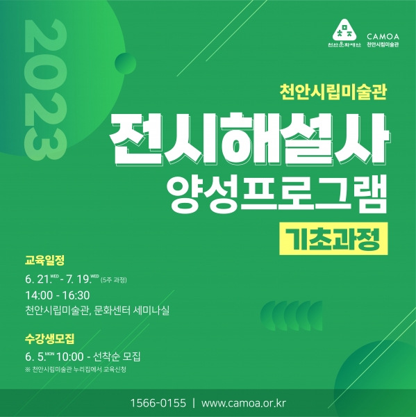 [Ytv영상스토리] 천안문화재단 천안시립미술관은 5일 오전 10시부터 ‘2023 전시해설사 양성프로그램’참여자를 선착순 모집한다고 2일 밝혔다.