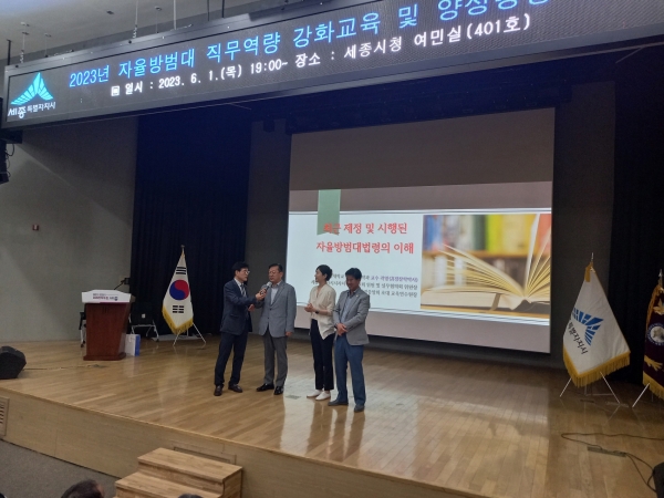 [Ytv영상스토리] 세종특별자치시가 지난 1일 시청 여민실에서 세종시 자율방범대연합회를 대상으로 ‘2023년 자율방범대연합회 직무역량강화 및 양성평등 교육’을 개최했다.