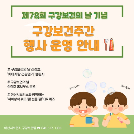 아산시, 제78회 구강보건의 날 기념 구강보건 주간행사 운영