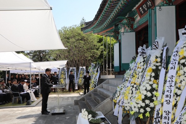 이날 관내 기관단체장, 국가유공자·유족, 군민 등 250여명이 참여해 추모 묵념과 헌화·분향에 함께하고 추념사 및 헌시 낭송을 경청하는 시간을 가졌다.