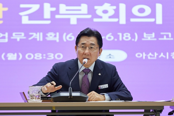 아울러 “우리 시정은 탈 정치화해야 한다 그래야 우리가 당당하게 시정을 할 수 있다 하지만 우리 아산은 시정을 정치로 오염시키려는 일부 성향의 사람들이 존재하고 있다”며 “우리 공직자들이 정치적 중립과 우리 다양한 민간 사회단체들이 시정마저 물들이고자 하는 그런 범죄행위에 대해 단호하고 또 즉각적으로 대처를 해야 한다 특히 시 간부들은 경륜과 지혜를 발휘해 정황을 면밀하게 살펴서 적극적으로 대응해 줄 것”을 주문했다.