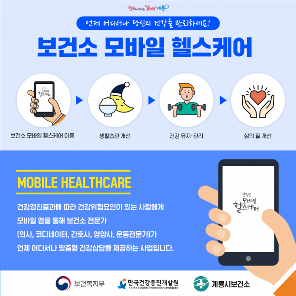 모바일 헬스케어 참여를 희망하는 시민은 보건소 건강증진과 방문건강팀에 전화신청하거나 네이버 폼을 활용해 온라인 신청하면 된다.
