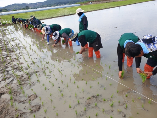 이날 행사에는 마을 주민, 주요 내빈, 4-H회원 및 청년농업인, 부여군농업기술센터 관계자 등 40여명이 참여한 가운데 전통적 방식의 손 모내기를 체험하는 시간을 가졌다.