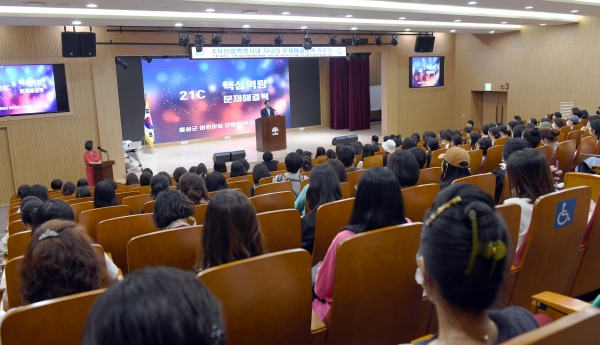 이번 교육은 급격하게 변화하는 미래사회에서 우리 아이들이 다양한 상황에서도 유연하게 대처하는 융합적인 사고능력, 상황에 맞는 결과를 만들어 내는 문제해결 능력을 키우기 위한 내용을 주제로 한 이번 교육은 홍성군어린이집연합회 주관, 동심연구소의 이정선 연구원이 강의를 맡았다.