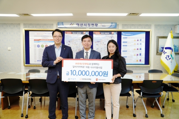 한편 둔포면에 소재한 ㈜한화/모멘텀은 올해부터 아동 권리 옹호 NGO 세이브더칠드런 서부지역본부와 ‘같이가치먹쥬’ 아동 식사 지원사업을 진행하는 등 나눔문화 확산에 앞장서고 있다.