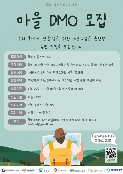 [Ytv영상스토리] 홍성군에 따르면 홍성DMO사업단에서 읍·면단위 DMO 육성을 통한 마을관광 활성화를 위해 참여마을을 19일까지 2개소 모집한다고 밝혔다.