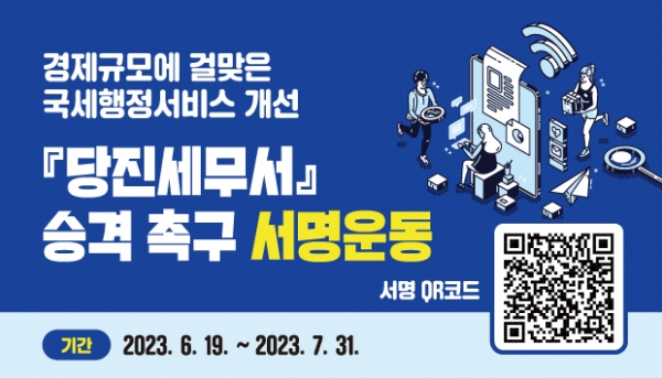 이에 시는 당진세무서 승격을 위해 관계기관 및 시민단체와의 협력체계를 공고히 하고 다음 달 31일까지 진행될 예정인 서명운동 결과를 행정안전부, 국세청 등 중앙부처에 전달하는 등 승격을 위해 행정력을 집중할 계획이라고 전했다.