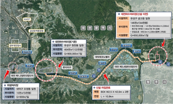 ‘대전하수처리장 시설현대화 민간투자사업’은 총사업비 7,214억원을 투입해 기존 원촌동 하수처리장과 오정동 분뇨처리장을 유성구 금고동 103번지 일원으로 통합 이전하는 사업이다.