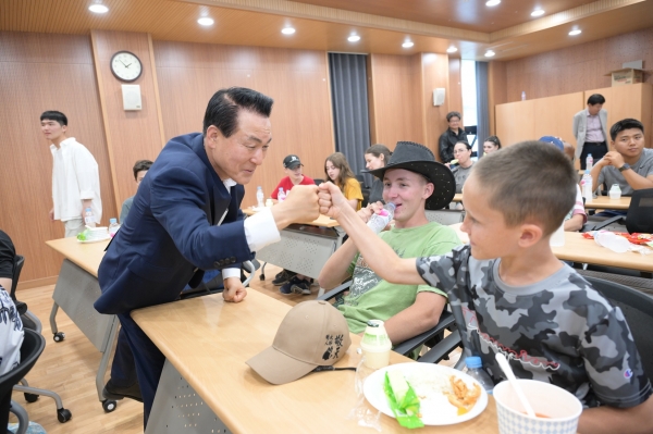 이어 방문자 한명 한명을 격려한 백 시장은 “여러분의 고향인 미 대륙, 앨라배마주의 헌츠빌이 바로 논산이 지향하는 군수산업 중심의 혁신이 일어난 곳”이라며 “우리 논산 역시 ‘대한민국의 헌츠빌’를 지향점 삼아 산업의 대전환을 이뤄내고 있다”고 전한 뒤 논산이 지닌 비전과 목표를 소개하기도 했다.