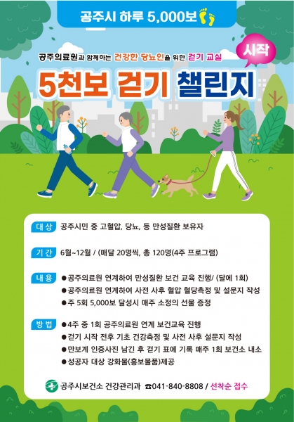 [Ytv영상스토리] 공주시가 고혈압, 당뇨 등 만성질환을 가진 지역민의 건강행태 개선을 위해 6월부터 12월까지 걷기교실을 운영한다고 21일 밝혔다.
