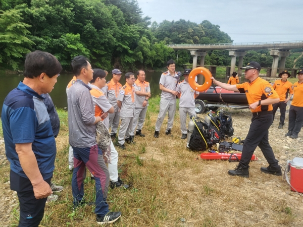 참여자들은 내수면 물놀이 안전사고 예방과 대응 역량을 높이기 위해 익수사고 발생 시 긴급대처와 실제 수난사고 발생 시 구조장비를 활용한 실전 연습에 집중했다.
