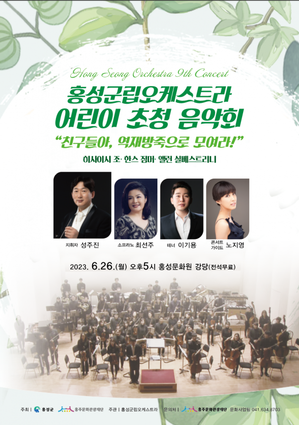 성주진 지휘자가 이끄는 홍성군립오케스트라와 소프라노 최선주, 테너 이기용이 다양한 뮤지컬 음악을 아름다운 목소리로 해석한 작품을 선보이고 콘서트가이드 노지영의 친절한 해설이 곁들어져 편안하게 음악을 감상할 수 있다.