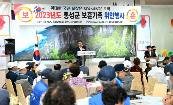 최종수 보훈단체 협의회장은 “6월 호국보훈의 달을 맞이해 나라를 위해 헌신한 우리 보훈 가족들이 함께하는 시간을 가져 뜻 깊게 생각한다”며 “앞으로도 우리의 자손들에게 애국정신의 귀감이 될 수 있도록 최선을 다하겠다”고 전했다 이용록 홍성군수는 “국가유공자와 보훈가족이 영예로운 삶을 유지하고 순국선열들의 숭고한 희생이 기억될 수 있도록 다양한 보훈 선양사업을 적극 추진하겠다고”고 말했다.