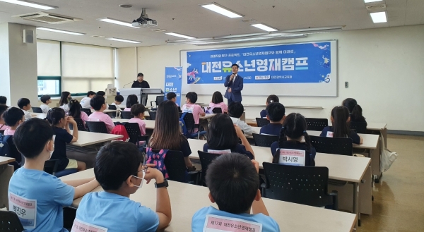 올해 17번째로 실시하는 대전유소년영재캠프는‘미래직업 탐구 프로젝트, ‘대전유소년영재캠프와 함께 미래로’’를 주제로 로봇 윤리학자, 정보보호 전문가, 신재생에너지 전문가, 가상현실 전문가 등 총 4개 분야의 프로그램으로 진행됐다.