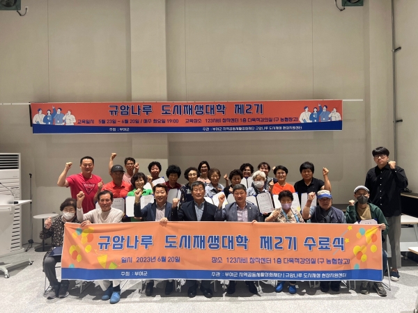 박상현 규암나루 도시재생현장지원센터장은 수료식에서 “규암나루 도시재생사업이 이일건 주민협의회장을 비롯한 규암나루 주민들이 적극적으로 참여해 주셔서 순조롭게 진행되고 있다”며 “지역주민들을 위한 다양한 역량 강화 프로그램을 계획해 공동체 의식의 함양과 지역에 마을에 대한 애착심을 고양할 수 있도록 센터에서 최선을 다하겠다”고 전했다.