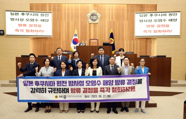 한편 세종시의회는 ‘일본 후쿠시마 원전 오염수 해양 방류 결정 규탄 및 철회 촉구 결의안’을 국회의장과 국무총리, 국회 운영위원회 위원장, 국회 외교통상위원장, 해양수산부 장관, 외교부 장관 등에 이송할 예정이다.