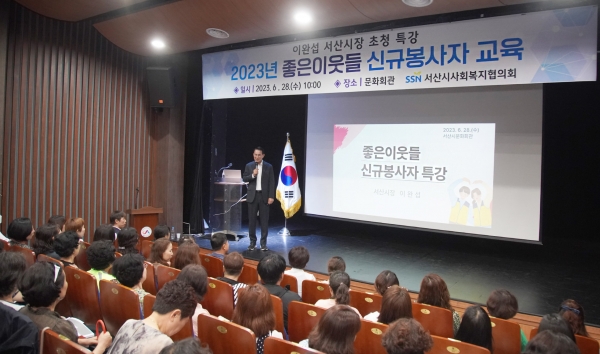 서산시사회복지협의회은 이 시장의 특강 전 자체 실무교육도 진행해 신규 봉사자들의 역량을 강화하는 시간을 가졌다.