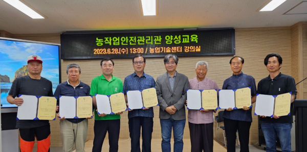 농업기술센터는 지난 28일 농작업안전관리관 양성 교육과정 수료자 7명에 대한 위촉식을 갖고 농작업 안전지도 활동을 위한 준비를 마쳤다.