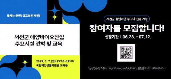 서천군, 다음달 12일까지 해양바이오산업 교육 참여자 모집