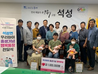 조성준 석성면장은 “저출산 시대에 민관이 협력해 출산 장력 문화를 만드는 데 최선을 다하겠다”고 말했다.