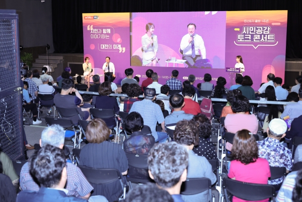[Ytv영상스토리] 대전시는 29일 오후 2시 대흥동 대전음악창작소에서 민선 8기 출범 1주년을 맞아 시민공감 토크 콘서트를 개최하고 수도권을 뛰어넘는 일류 경제도시 구상을 시민들과 공유했다.