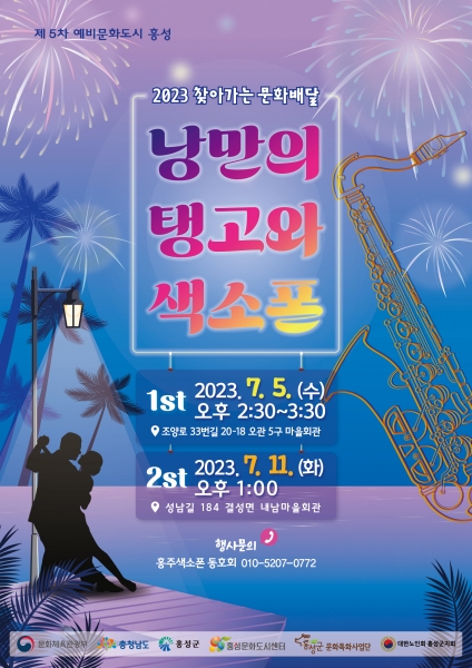 홍성군 황선돈 문화관광과장은 “관내 마을회관을 찾아가 어르신들께 탱고와 색소폰을 전하는 이번 공연은 마을에 새로운 행복을 전하는 시간이 되시길 바란다”고 전했다.