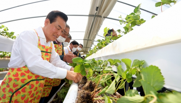 논산시 공들인 ‘단동형 딸기 계단재배 연구’ 첫 시범 성공적… 기대 생산성·소득 탁월히 높다