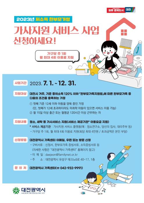 대전시 저소득 한부모가정 가사서비스 지원