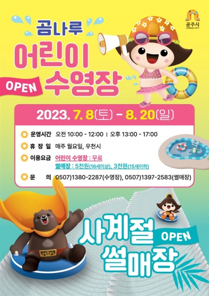 [Ytv영상스토리] 공주시가 본격적인 피서철을 맞아 곰나루 어린이 수영장과 금학생태공원 사계절 썰매장을 7월 8일부터 8월 20일까지 운영한다.