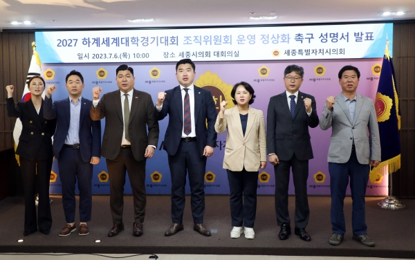 더불어 “대회 조직위원회 및 사무처를 정상 운영해 대회 시설 및 인프라, 국제대학스포츠연맹 협력사업, 홍보 마케팅, 자원봉사자 구성 등 대회에 필요한 사항을 차질 없이 준비해야 한다”고 성명서 제안 배경을 밝혔다.