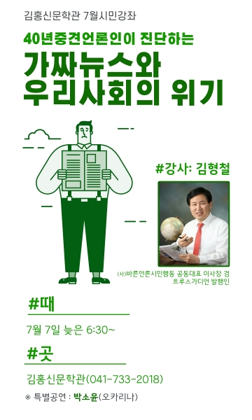 7월 7일 언론인 김형철이 “가짜뉴스와 우리사회의 위기”를 진단한다.