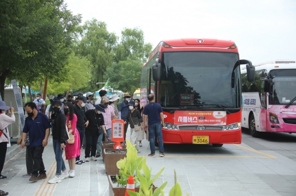 부여서동연꽃축제를 찾은 관람객이 축제행사장과 부여 시가지를 편리하게 이동할 수 있게 해 행사장뿐만 아니라 시내 상권 방문을 유도해 지역경제 활성화에 활력을 불어넣겠다는 계획이다.