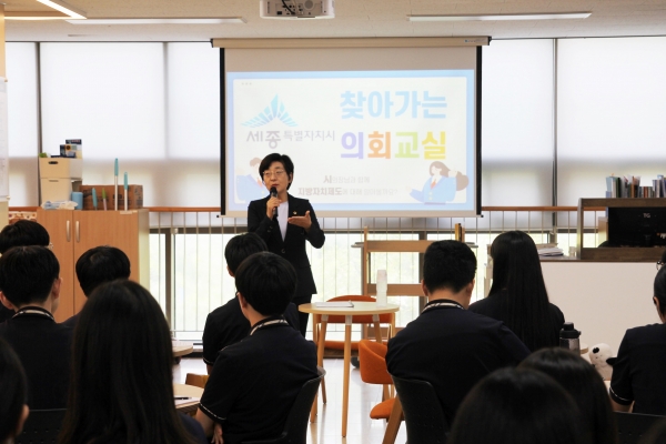 세종시의원이 직접 관내 학교를 방문해 지방의회와 시의원의 역할을 알기 쉽게 설명하고 질의응답을 통해 친근한 소통의 시간을 가지는 프로그램이다.