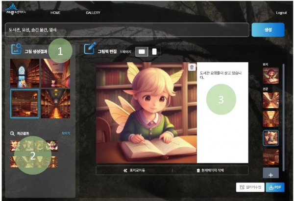아이 창작소는 어린이들이 작성한 시나리오에 적합한 그림을 인공지능이 동화책 형식으로 제작해주는 서비스로 ㈜채움씨앤아이사 의 ‘케이닷아이그림 솔루션’을 활용해 시범운영한다.
