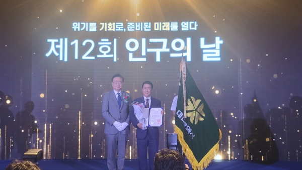 대전시는 11일 정부세종청사 대강당에서 열린 제12회 인구의 날 기념식에서 인구증가 유공 대통령 기관 표창을 수상하며 인구 증가를 위한 다양한 정책과 노력을 인정받아 받았다고 밝혔다.