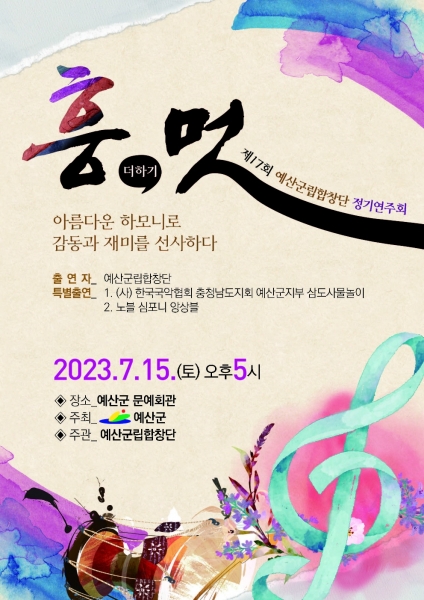 이번 정기연주회는 ‘흥 더하기 멋’을 주제로 군민 모두가 음악을 통해 하나로 화합할 수 있는 감동의 무대를 통해 아름다운 하모니를 선사할 계획이며 전석 무료로 관람할 수 있다.