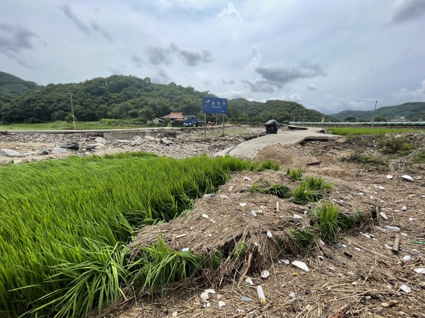불어난 빗물로 논이 물에 잠겼을 때는 벼잎 끝만이라도 물 위로 나올 수 있도록 물빼기 작업을 한 후 벼 줄기나 잎에 묻은 흙과 오물을 제거해야 한다.