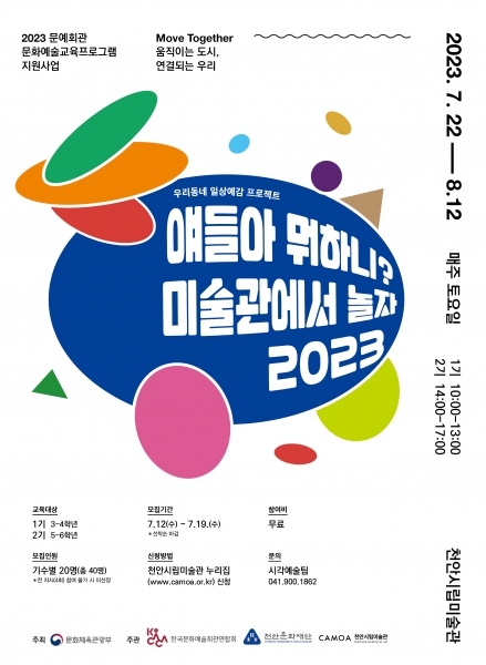 [Ytv영상스토리] 천안시립미술관은 오는 22일부터 문예회관 문화예술교육프로그램 지원사업 ‘얘들아 뭐하니? 미술관에서 놀자 2023’를 진행한다고 밝혔다.