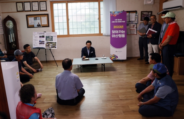 박 시장은 이날 오후 영인면 성내1리 마을회관에서 ‘찾아가는 아산형통’을 열고 고용산 폐채석장 개발에 반대하고 있는 주민들에게 이같이 말했다.