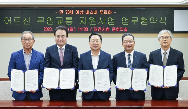 [Ytv영상스토리] 대전시는 17일 하나은행, 하나카드, 버스운송사업조합, 티머니와 ‘만 70세 이상 어르신 무임교통 지원사업을 위한 업무협약’을 체결했다.
