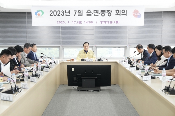 이번 회의는 지난 주말 발생한 수해와 관련 각 읍면동의 피해 상황을 공유하고 주민 피해를 최소화할 수 있도록 신속한 복구에 최선을 다할 것을 당부하기 위해 열렸다.