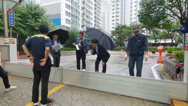 장마 대비 7월 중순 이전에 물막이를 설치할 예정이었으나 연일 집중호우가 내림에 따라 당초 계획을 앞당겨 관리주체와 물막이 설치업체를 독려해 5개 단지에 설치를 완료했고 1개 단지도 이달 중 완료할 예정이다.