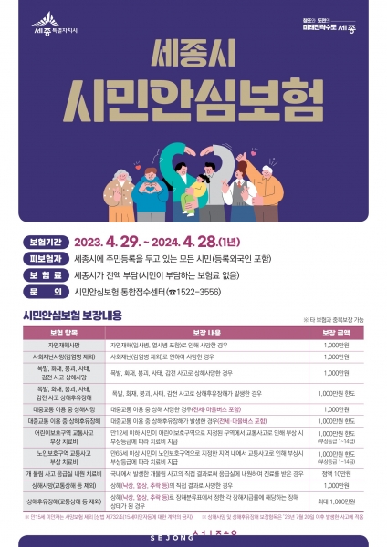 시민안심보험은 별도 가입 절차 없이 세종시가 보험료를 전액 부담해 보험사와 직접 계약해 주민등록을 둔 모든 시민은 자동 가입된다.