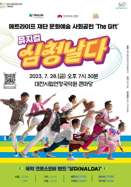 [Ytv영상스토리] 대전시립연정국악원은 한국메세니협회와 메트라이프생명이 문화예술 사회공헌 사업으로 추진하는‘뮤지컬 ‘심청날다’’를 국악원 초청기획으로 7월 28일 19:30 국악원 큰마당에서 개최한다고 밝혔다.