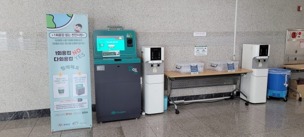 사용한 컵은 수거함에 반납하면 되고 이후 컵 공급·세척 대행을 맡은 천안아산지역 자활센터가 수거해간다.