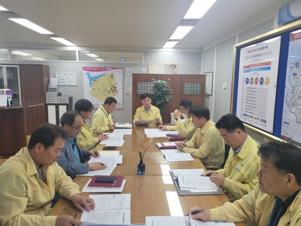 이날 보고회는 안전총괄과, 산림과, 사회복지과, 생태하천과, 건설정책과, 도로관리과, 건축과, 공동주택과, 농정과, 하수도과 등 관련 부서에서 호우 대비 상황에 대해 보고하고 대응 방안을 논의했다.