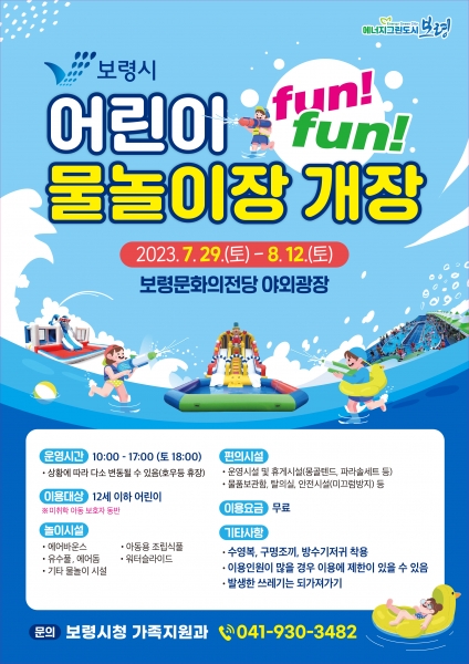 [Ytv영상스토리] 보령시는 오는 29일부터 8월 12일까지 15일간 보령문화의전당 광장에서 ‘보령시 어린이 funfun 물놀이장’을 운영한다.