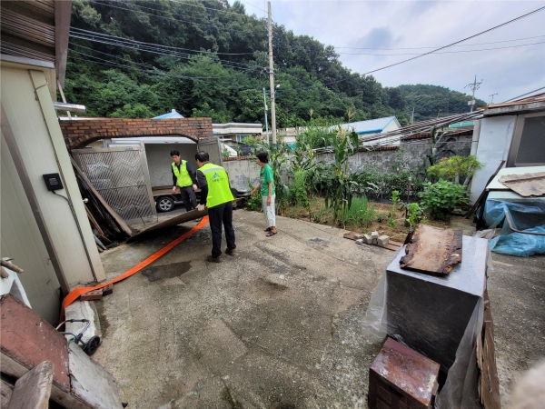 조치원읍은 독거노인, 기초생활수급자 등 사회적 약자 중 이번 호우에 따라 수해쓰레기가 발생한 가구를 대상으로 환경관리원, 대행업체 등 15명을 투입해 쓰레기 배출과 수거를 도왔다.