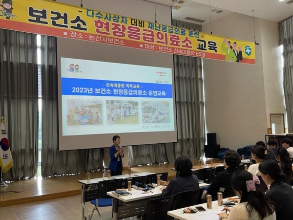 [Ytv영상스토리] 논산시가 재난상황 발생 시 신속한 출동 및 적확한 의료대응에 나서기 위해 ‘2023년 현장응급의료소 운영교육’을 지난 25일 시 보건소 건강홀에서 실시했다.